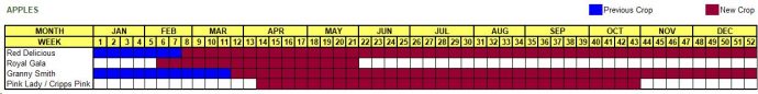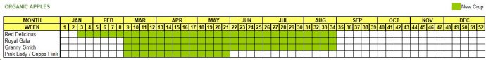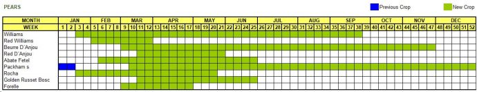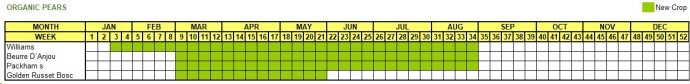 AVAILABILITY Click on the image to enlarge the availability chart in PDF format. PEARS APPLES ORGANIC PEARS ORGANIC APPLES CHERRIES